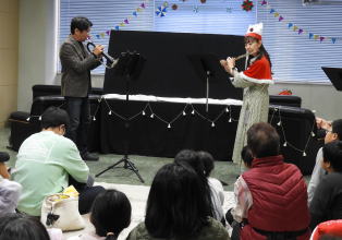 フルートやハンドベルによるクリスマスソングの演奏や、絵本の読み聞かせ、ペーパーシアターなどで