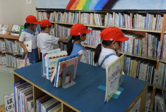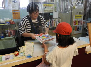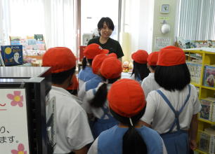 児童の皆さんは、施設内の見学と本を借りる体験をされました。