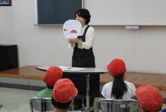 第1部のおはなし会では、大型絵本の読み聞かせや大型ペープサートなどで季節の物語を楽しみました。