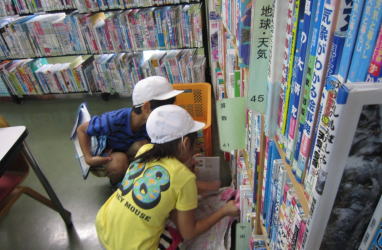 児童たちは班ごとに、施設内見学や本を借りる体験をされました。