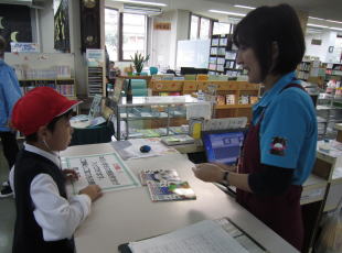 気に入った本が見つかると、笑顔でカウンターに本を持ってきてくれました。