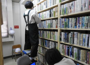 よりよい資料提供をするため、資料が正しい場所にあるか、資料自体に異常がないか確認し、同時に書架の清掃も行います。